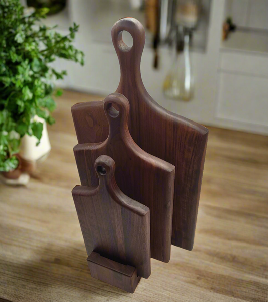 3-piece Walnut Charcuterie Cheese Board Set with Stand